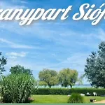 Az 1 hálószobás apartman Siófok a siófoki Aranypart körzetében fekszik, az A béke jóságos angyalától nagyjából egy 10 perces kocsiútra. A Sóstó csaknem 10 percnyi autóútra, a Heviz-Balaton nemzetkozi repülőtér pedig 90 km-re van az ingatlantól.